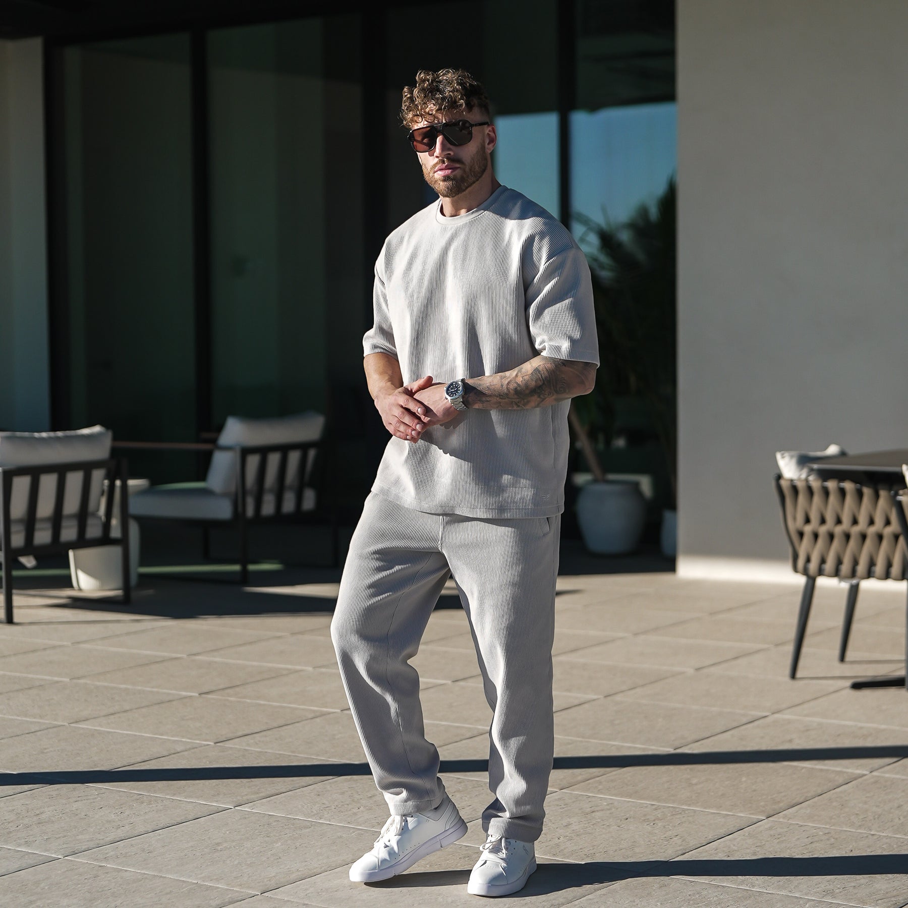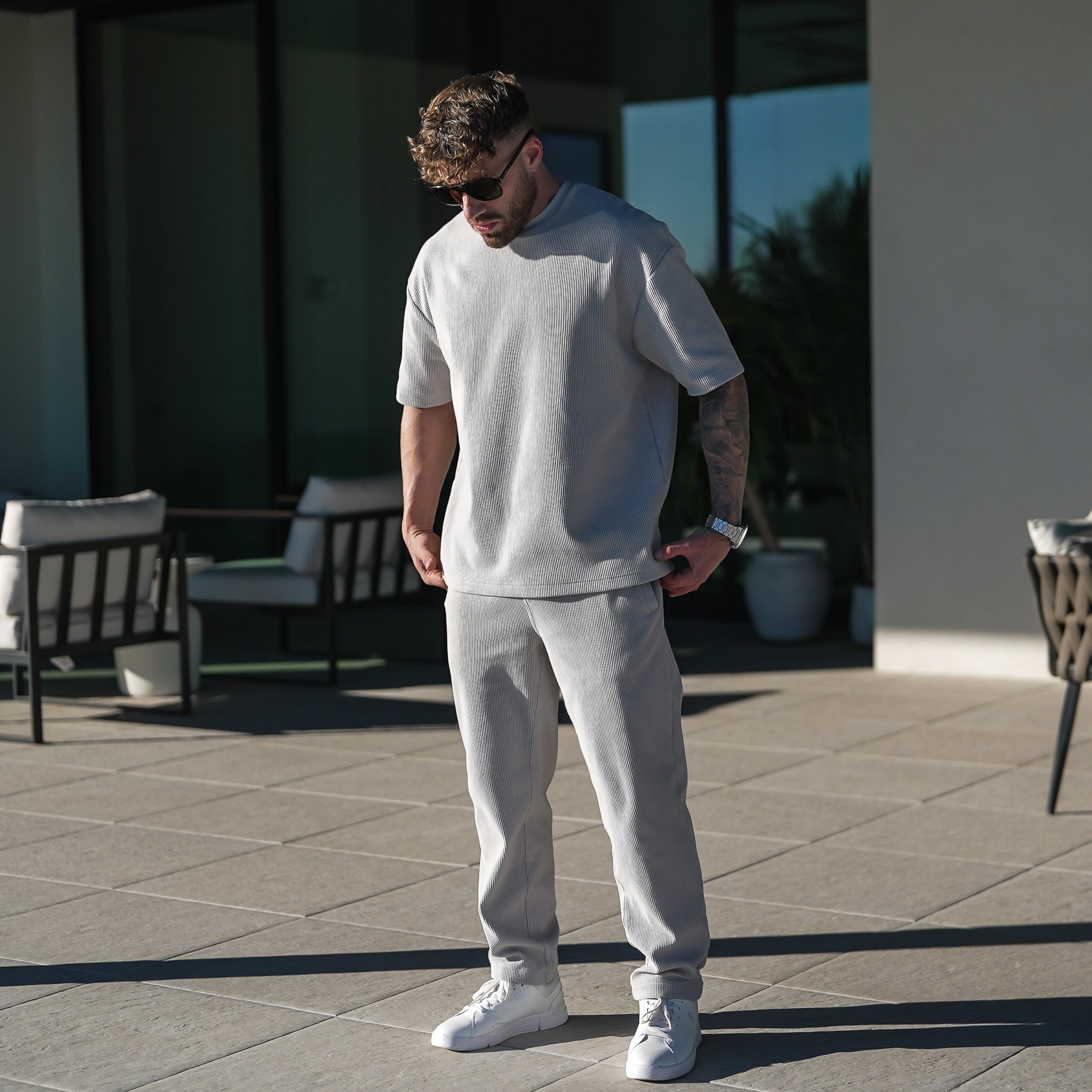 The Lisbon Set is effortless style done right. A premium tee and pant combo with subtle texture and a relaxed, refined fit that gives you that off-duty old money look—without trying too hard.