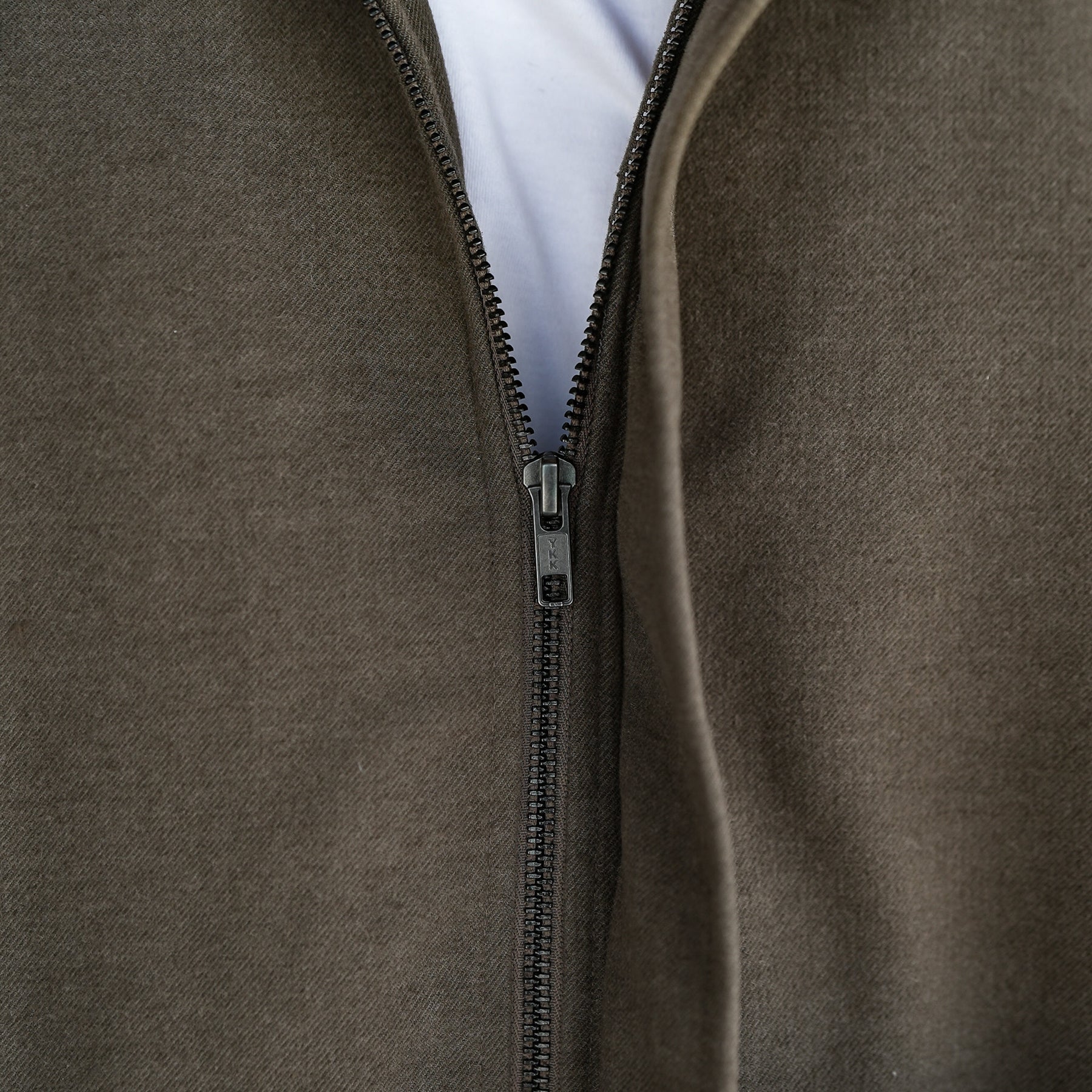 • Minimalist design with a smooth zip-front and no chest pockets