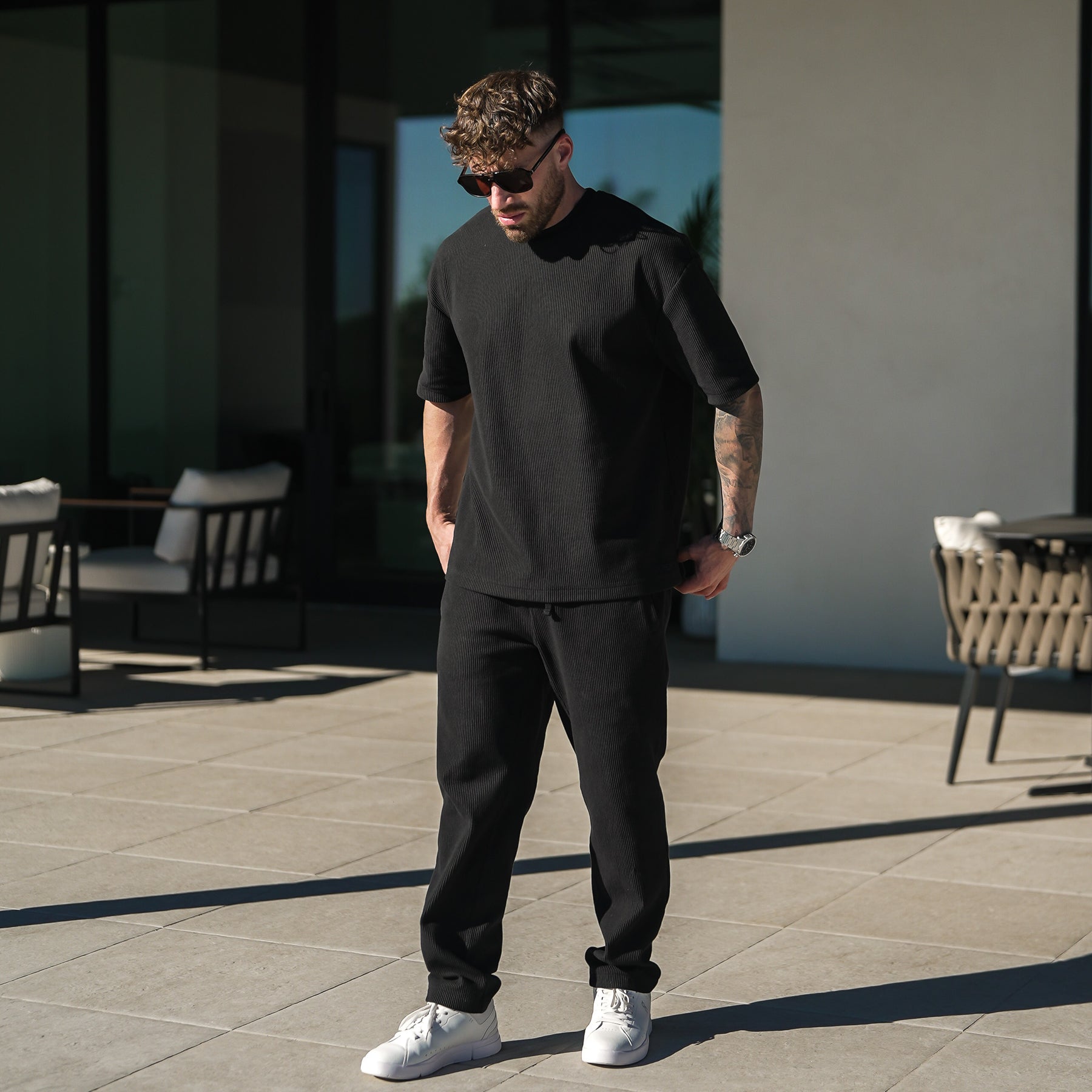 The Lisbon Set is effortless style done right. A premium tee and pant combo with subtle texture and a relaxed, refined fit that gives you that off-duty old money look—without trying too hard.